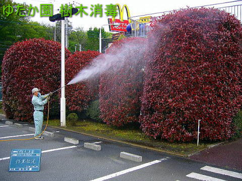 店舗様の樹木消毒、作業状況